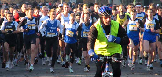 die ersten Läufer fast 50 Meter vorne weglaufen. Darunter